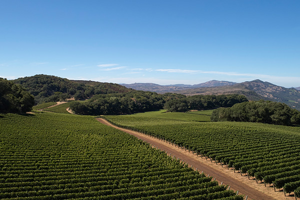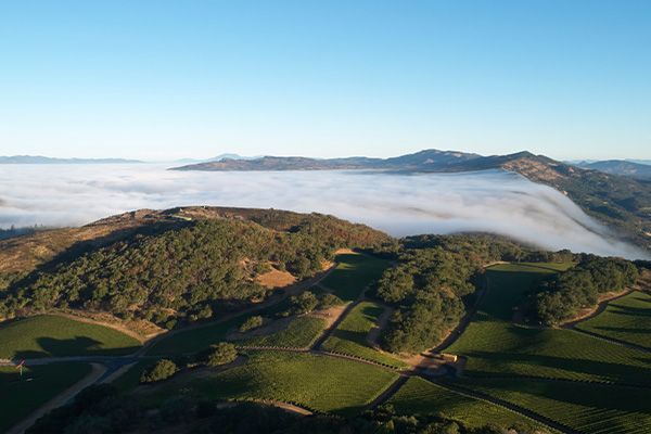 ナパ・ヴァレーの山頂付近に広がるケンゾー エステイトの畑。その海抜は、300~500メートルにも及びます。従って昼夜の寒暖差も激しく、その結果、果実味が凝縮された糖度の高い葡萄が実るのです。