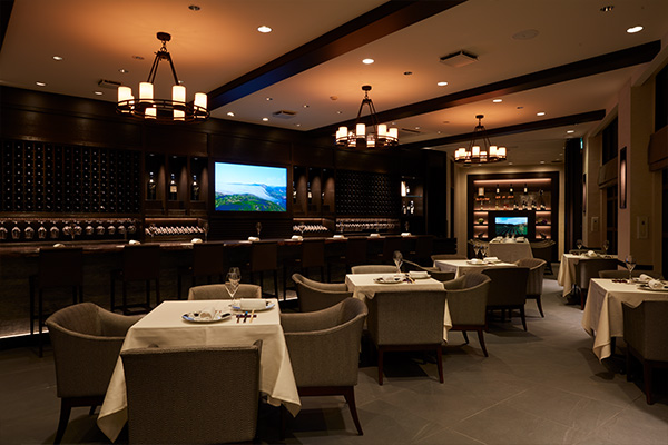 ナパ・ヴァレーのワイナリーと同時にオープンした日本初のワイナリー直営店。印象的なのは、ワイナリーのテイスティングルームをモチーフにしたカウンターで、店内を貫くその長さは全長8メートル強と、すべての直営店の中では最長を誇ります。テーブルをゆったりと配したダイニングも心地良い空間で、店内奥には、遮音性の高い開閉式のパーテーションで仕切られた個室も備えています。