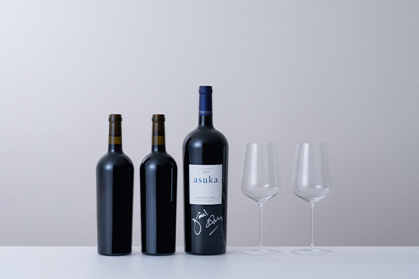 辻本憲三・夏子夫妻がカベルネ・フラン主体の「明日香」を誕生させたのは2009ヴィンテージでのこと。華やかな香りと柔らかな口当たりは、その人気を不動のものにしていきました。しかし、その誕生には、現在のブレンドスタイルか、カベルネ・フラン100%かという開発途上の葛藤があったのです。2009ファースト・ヴィンテージと2013ヴィンテージで、カベルネ・フラン100%のプロトタイプが生産され、辻本夫妻もその出来栄えには驚きを隠せませんでした。結果的にはブレンドスタイルが定着していくのですが、このふたつのカベルネ・フラン100%のプロトタイプは、幻のアイテムとして、コアファンの間で語り継がれています。そして「明日香」は、2015ヴィンテージで、全米トップ100ワインの1本に選ばれます。そのセパージュが、全12ヴィンテージで唯一となるカベルネ・フラン100%だったのです。そこで、「明日香」のサイドストーリーとも言えるカベルネ・フラン100%のボトルに着目し、貴重な3本をご用意しました。