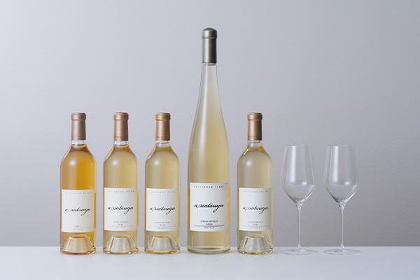 数々の受賞歴を誇る白ワインの金字塔「あさつゆ」。ここでは、歴代のヴィンテージの中から、特に評価の高かったヴィンテージだけを厳選しました。まずは、ファースト・ヴィンテージの2007年。白ワインに長期熟成は不可能という既成概念を真っ向から覆す貴重な逸品です。続いて、Vivino Wine Style Awardsにて、初めて最高峰の金賞を受賞した2014年。「あさつゆ」は、ここから3年連続で同アワードの金賞に輝いていったのです。さらには、グレート・ヴィンテージと評される2018年。「あさつゆ」は、カリフォルニアのベスト・オブ・ソーヴィニヨン・ブランに選出され、このヴィンテージは各メディアで高評価を獲得しました。そして、California Wine Advisorsにて、白ワインとしての最高評価98点を獲得した2020年。こちらは木箱入りのマグナムボトルでご用意いたします。これらの素晴らしいヴィンテージに引けを取らない現行ヴィンテージと、「あさつゆ」のロゴが入ったオリジナルのザルトグラスを加えてのご提供です。