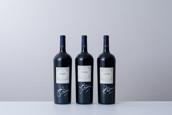 2009年は、ケンゾー エステイトが、栽培から醸造、出荷まで100%自社製造を行う優良品、エステイトボトルとして認可された年です。いわば、ケンゾー エステイトのリアル・ファースト・ヴィンテージと言える年の「藍」をマグナムボトルでご用意。長期熟成の魅力を愉しむのに最適な一本です。一方、グレート・ヴィンテージ2018年の「結」は、全米評価でロゼワインでは最高峰となる98点を獲得しています。そのマグナムボトルではラベルデザインがエッジングされています。ここでは、このふたつのマグナムボトルとそれぞれの銘柄名を入れたキャップをセットにしました。ナパ・ヴァレーのワイナリーでは、様々なオリジナルアイテムを開発するにあたって、辻本夏子CEOへのプレゼンテーションをするために、プロトタイプとして本物の商品を製作しています。ここにご用意したふたつのキャップは、残念ながら商品化されなかったものですが、そのかわり、世界にひとつだけの貴重なオンリーワン・アイテムとなったわけです。