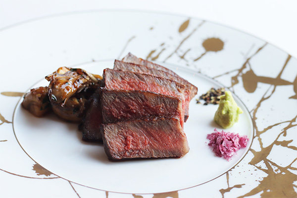 「藍 2021」のように深みのあるワインだと、お肉も重厚でないと負けます。力強く上質な和牛のステーキはいかがでしょうか。肉の旨味や肉汁の風味を感じていただきたいので、塩や胡椒、山葵、醤油といったシンプルな味付けで召し上がってみてください。「藍 2021」と最高のペアリングだとご実感いただけるのではないでしょうか。
