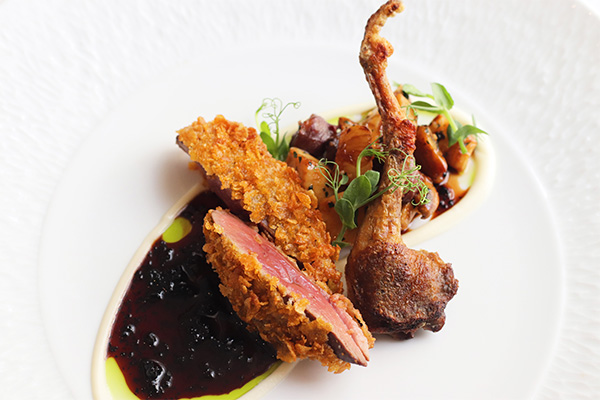 各店舗で「紫 2021」を際立たせる料理を提供していますが、六本木ヒルズ店のコース料理(※)でお出ししている「フランス産小鳩のフリット セップ茸と栗のボルドレーズ」をお勧めしたいです。